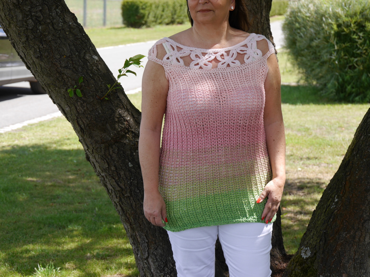 Häkelanleitung PDF – Tunika „Summer Blumenschirt“ im femininen, luftigen Häkelstil – individuell anpassbar
